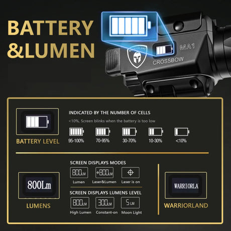 Warriorland Universal Tactical Red Laser Light with Magnetic Charger (800 Lumens)
